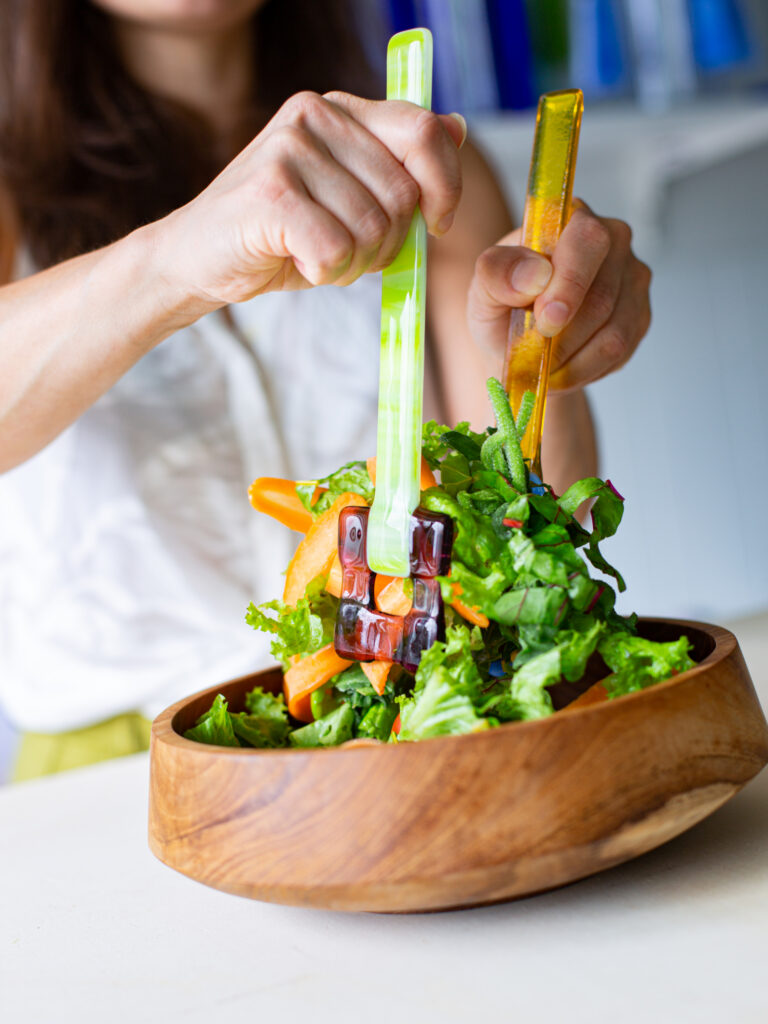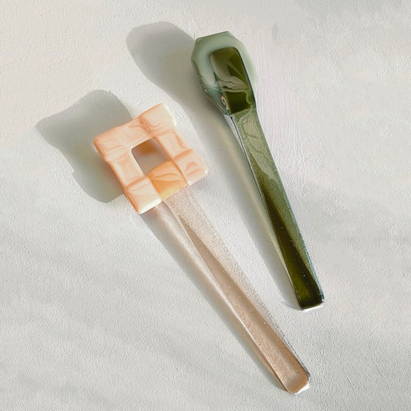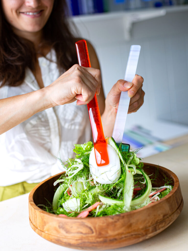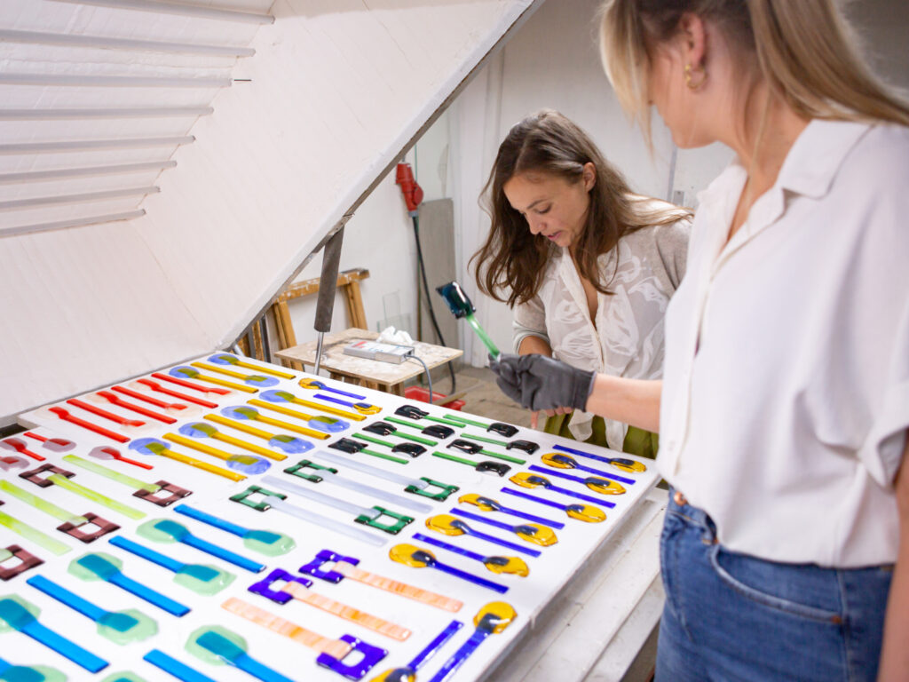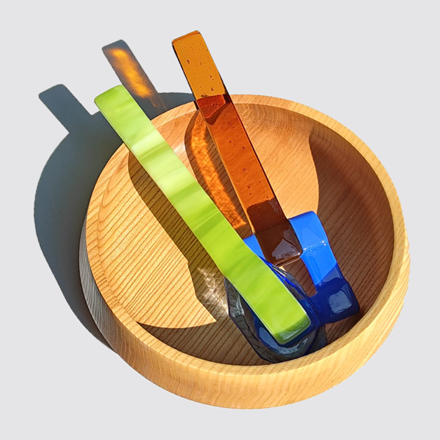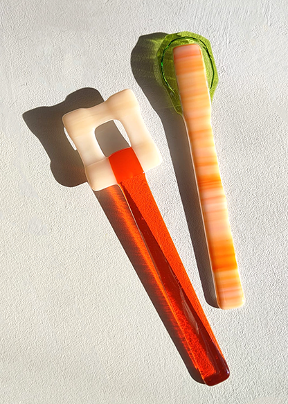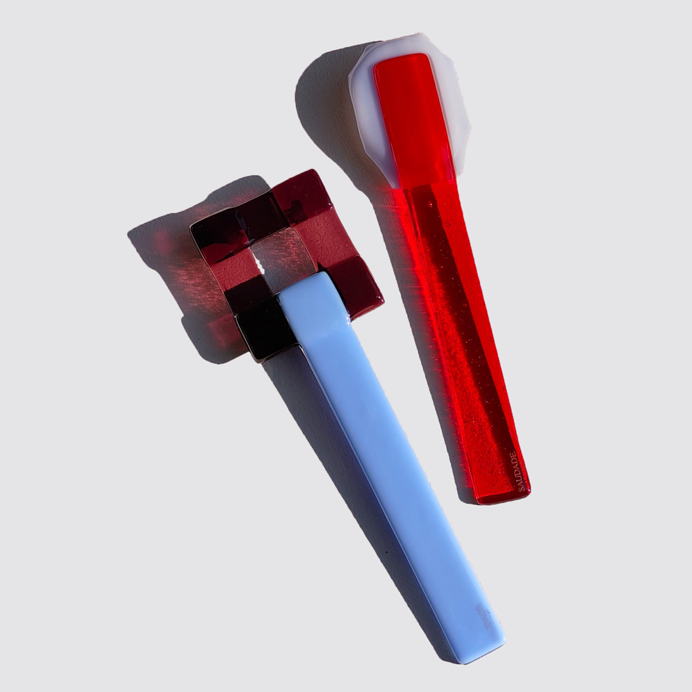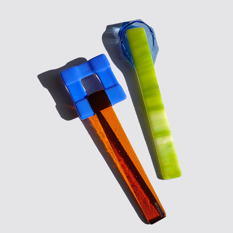 These are not mere utensils; they are handcrafted glass "Glace" sculptures from the Saudade Collective. Each piece is hand-shaped in the Netherlands, turning a functional object into a vibrant jewel of Dutch craftsmanship. Represented internationally by Sean Valerio, they bring a splash of artistic luxury to the modern